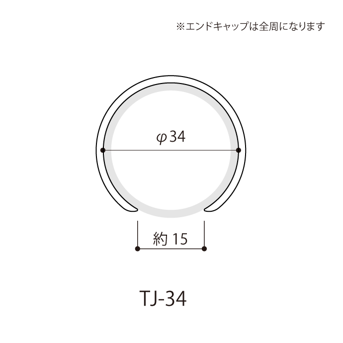 ※エンドキャップは2個のみ付属しています。追加分をご希望の場合は【エンドキャップ/手すりカバーTJ-34用】をご注文ください。【サイズ】定尺:L=2,500mm