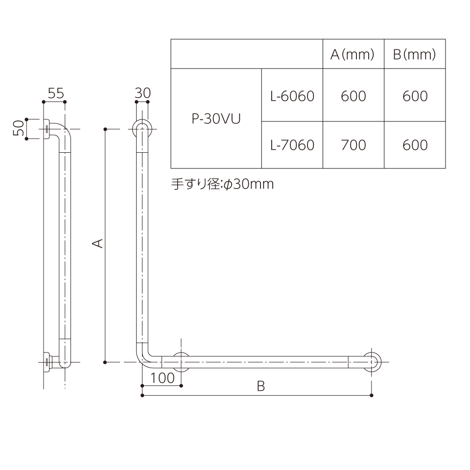 動作補助手すり ソフトハンド/P-30V/P-30M/L型/抗ウイルス